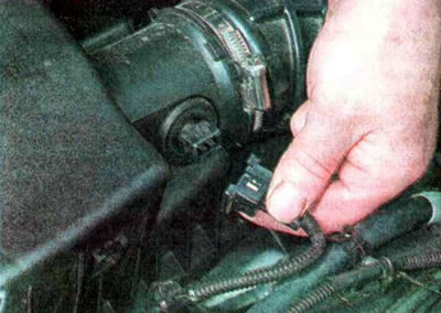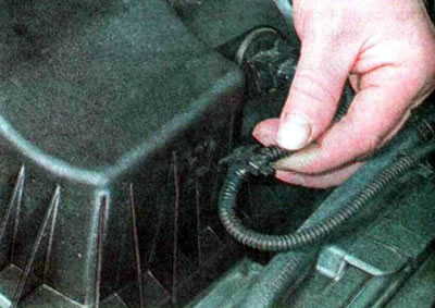 3. Отсоединяем колодку жгута проводов от датчика температуры воздуха.