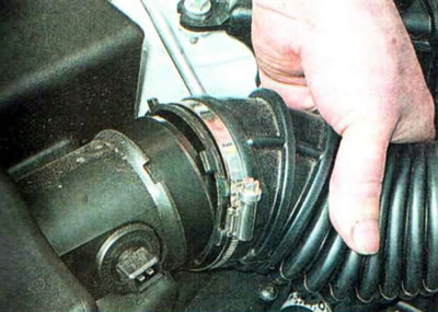 5. Отсоединяем патрубок от корпуса воздушного фильтра.