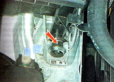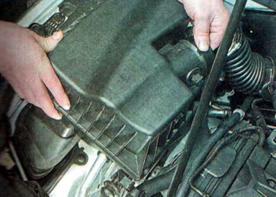 6. Отсоединяем корпус воздушного фильтра от опор и снимаем его с автомобиля.