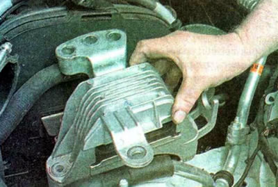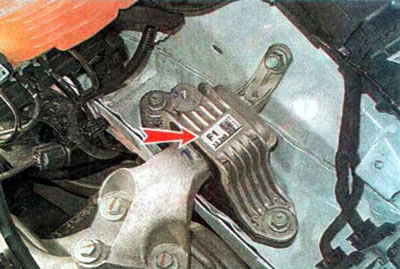 6. Устанавливаем новую опору в обратной последовательности. Болты и гайку крепления опоры к кузову затягиваем моментом 62 Нм. Болты крепления опоры к коробке передач затягиваем моментом 50 Нм, а затем доворачиваем на 60°-75°.