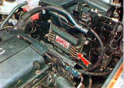 Замечание. ЭБУ установлен в моторном отсеке без защитного кожуха. При мойке моторного отсека закрывайте ЭБУ полиэтиленом. Попадание влаги на контакты его разъемов может вызвать повреждение электронных компонентов ЭБУ.