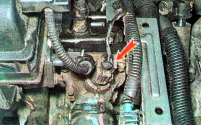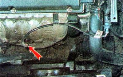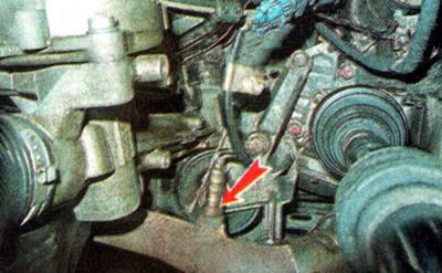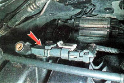 Датчик детонации установлен на задней стенке блока цилиндров под впускным трубопроводом.