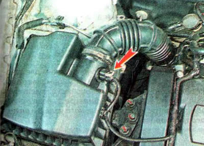 Датчик температуры воздуха на впуске установлен в выходном патрубке воздушного фильтра.