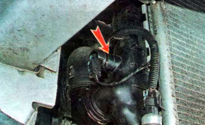 Датчик аварийного давления масла установлен на передней стенке блока цилиндров за компрессором кондиционера климатической установки. Датчик информирует ЭБУ о снижении давления в системе смазки двигателя до недопустимого уровня.