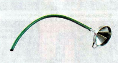 6. При помощи специального шприца или через воронку со шлангом небольшими порциями доливаем масло в коробку передач, пока оно не начнет вытекать из контрольного отверстия.
