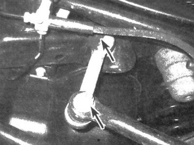 3. Открутите гайки, расположенные на нижних концах серег, затем отсоедините серьги от стабилизатора поперечной устойчивости.