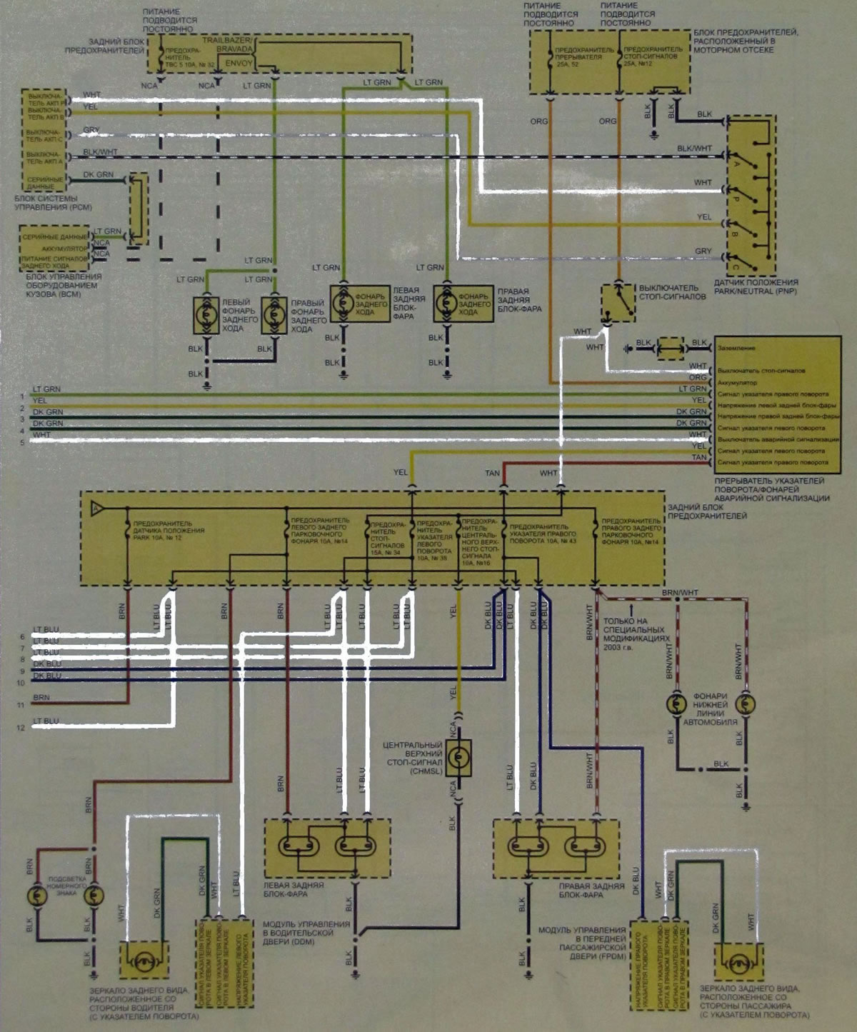 Статья о ремонте автомобилей Шевроле Трейлблейзер 1 (2001-2008): Наружное освещение (кроме фар): https://www.chevyman.ru/etc/Trailblazer-1/electrics/schemes/naruzhnoe-osveschenie-krome-far