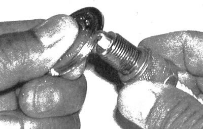 25.5b. Для изменения зазора согните наружный электрод, введя его в отверстие измерителя. Не допускайте растрескивания или раскалывания фарфорового изолятора центрального электрода