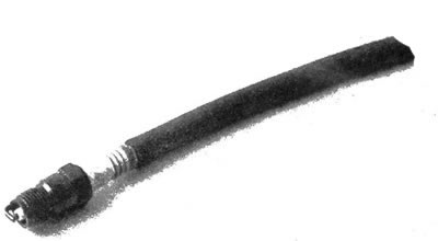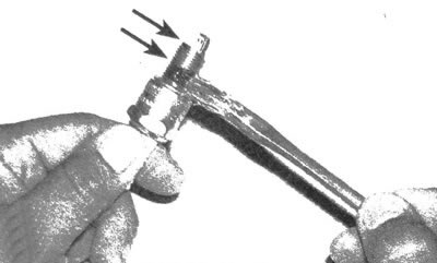 10. Вкрутите свечу пальцами руки, а затем воспользуйтесь для затяжки динамометрическим ключом. Весьма часто возникают трудности при совмещении резьбы свечи и отверстия. Для облегчения этой задачи натяните перед установкой отрезок резинового шланга на свечу (см. иллюстрацию). Гибкий отрезок шланга будет работать как шарнир при совмещении резьбы. Если свеча пойдет с перекосом, наличие отрезка шланга предотвратит повреждение резьбы отверстия.