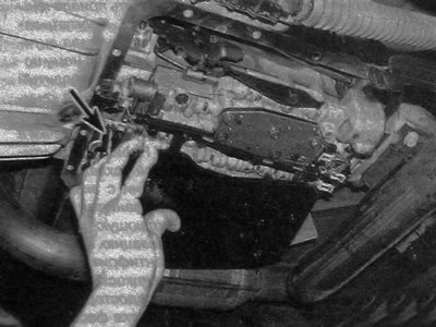 7. Чтобы открыть доступ к болтам поддона кожуха, необходимо снять тягу механизма переключения, которая расположена с водительской стороны (см. иллюстрацию).