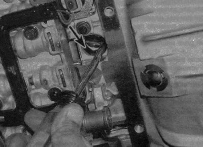 11. Снимите фильтр, расположенный на корпусе блока клапанов внутри кожуха коробки передач (см. иллюстрацию).