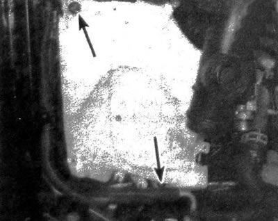 2. Ослабьте затяжку трех винтов, которыми крепится крышка воздухоочистителя, затем извлеките фильтрующий элемент и отсоедините от нижней составляющей кожуха трубку (нижняя составляющая кожуха также является бачком омывателя ветрового стекла) (см. главу 1).