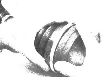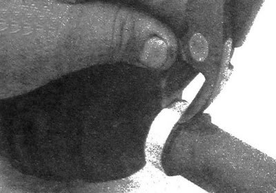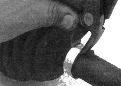 13.4а. Воспользовавшись диагональными кусачками, разрежьте хомуты чехла (хомут малого диаметра имеет зажимной замок; данный хомут можно разрезать, воспользовавшись ручным электроинструментом со шлифовальным диском; при сборке следует установить хомут обычной конструкции, так как для установки хомута с зажимным замком необходимо использование специального приспособления)