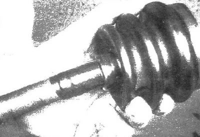 13.4n. Поместите смазку в шлицевое отверстие шарнира, затем введите туда деревянный цилиндр (диаметр которого чуть меньше диаметра приводного вала) и продавите смазку в шарнир; выполняйте операцию до наполнения шарнира смазкой