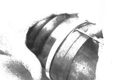 13.3а. Воспользовавшись диагональными кусачками, разрежьте хомуты чехла (хомут малого диаметра имеет зажимной замок: данный хомут можно разрезать, воспользовавшись ручным электроинструментом со шлифовальным диском; при сборке следует установить хомут обычной конструкции, так как для установки хомута с зажимным замком необходимо использование специального приспособления)