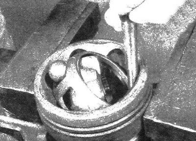 13.3d. Разведите концы стопорного кольца и стяните его в направлении центра приводного вала