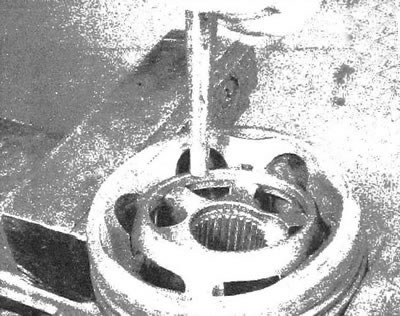 13.3f. Аккуратно сбейте трипод с приводного вала, воспользовавшись медным бородком (не наносите сильных ударов, чтобы не допустить отлетания трипода, так как при этом могут рассыпаться игольчатые подшипники