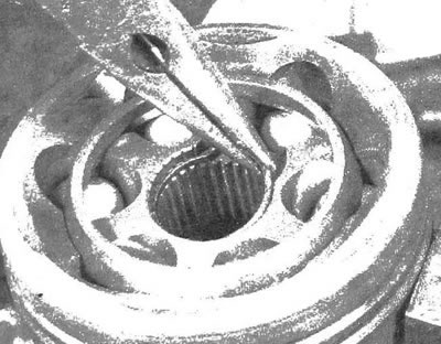 13.4с. Вдавите внутреннюю обойму в достаточной степени для снятия повернуть обойму пальцами, аккуратно постучите по ней и по сепаратору, воспользовавшись молотком и медным бородком