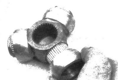 2. Зажмите приводной вал в тисках с тканевыми накладками, наличие которых предотвращает повреждение полуоси. Проверьте перемещение ШРУСа в радиальном направлении. Наличие чрезмерного перемещения свидетельствует об изношенности деталей шарнира. Убедитесь в плавности перемещения шарниров во всех возможных направлениях. Если чехол разорван, разберите шарнир и осмотрите его элементы - они могут оказаться чрезмерно изношенными в результате нехватки смазки или проникновения в ШРУС инородных частиц.