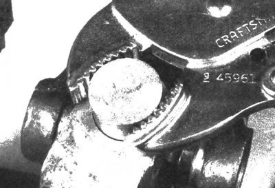 4.4. Чтобы отсоединить карданный шарнир от вала, воспользуйтесь тисками как прессом - за счет использования торцовой головки меньшего диаметра произойдет вдавливание крышки подшипника в головку большего диаметра